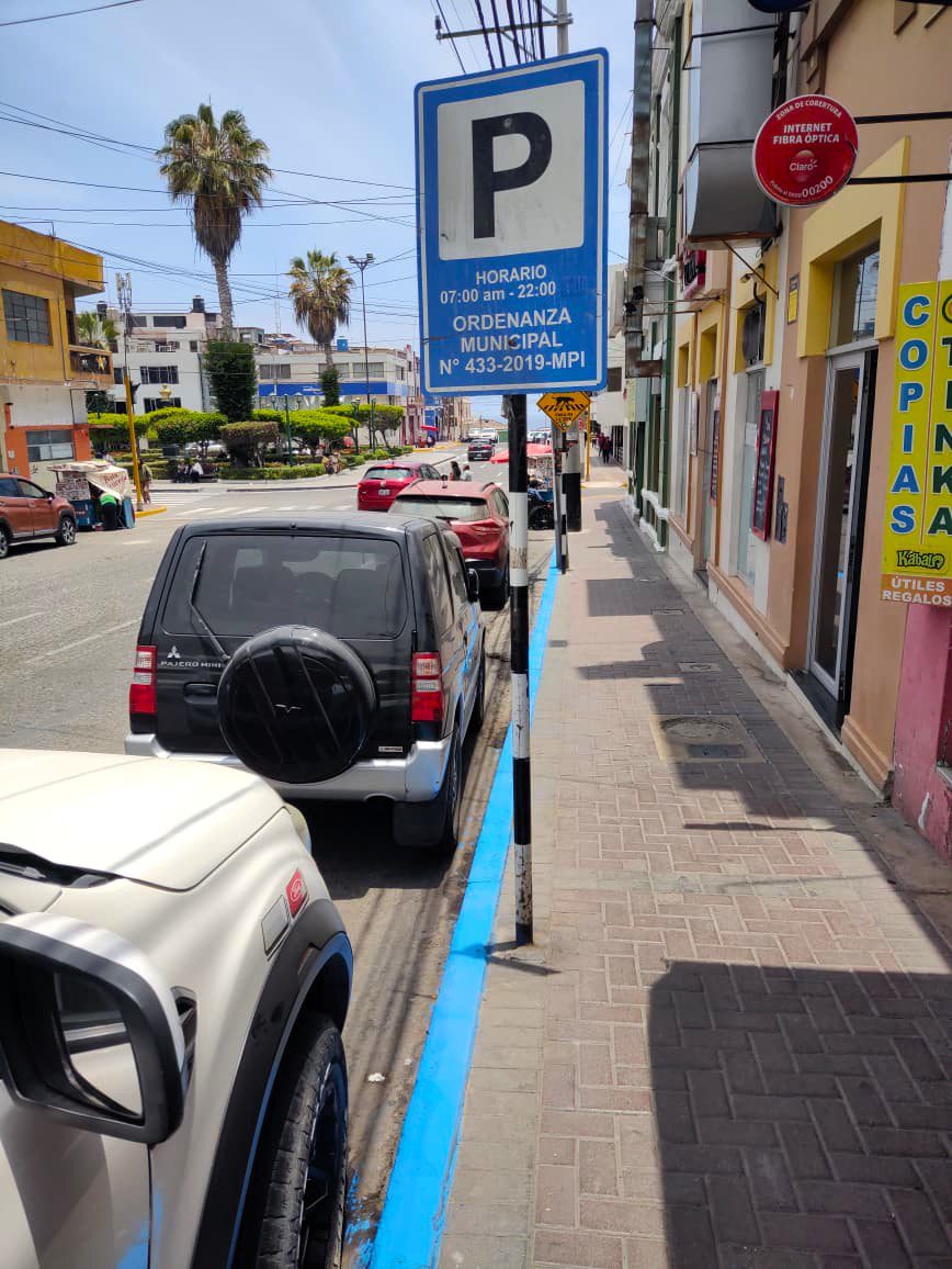 El uso del color azul responde a lo establecido en la ordenanza 433-2019, que regula el estacionamiento en áreas específicas del casco urbano.