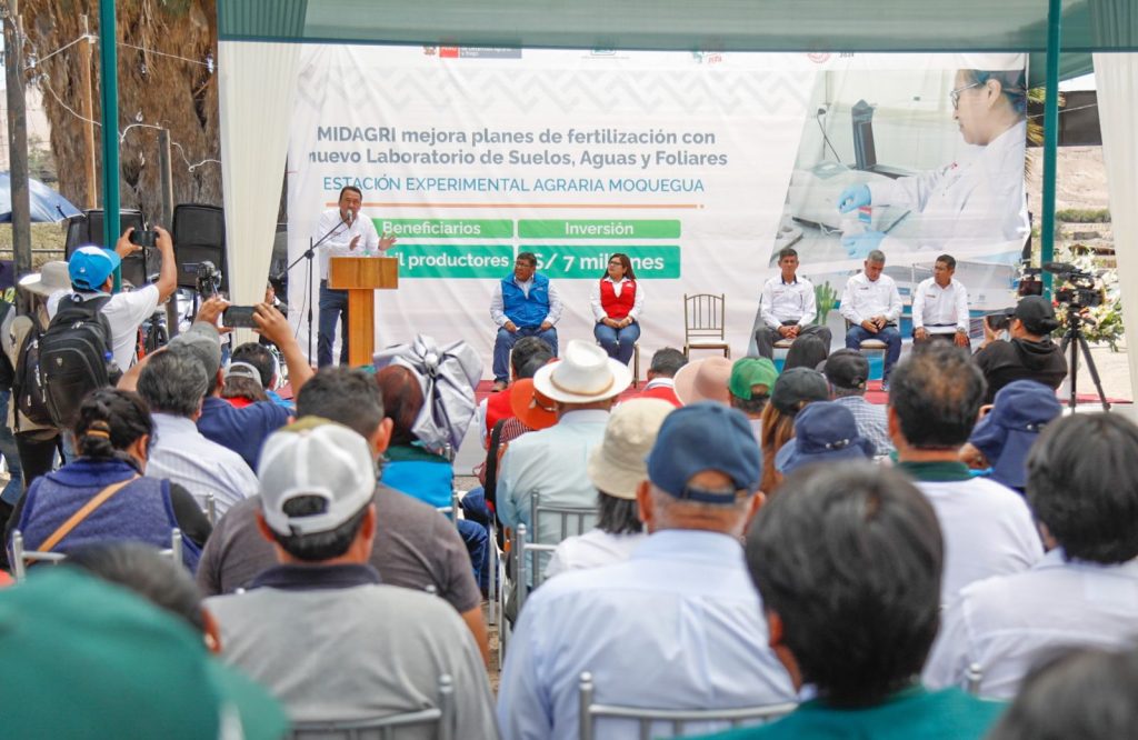 El ministro Manero Campos destacó que este laboratorio, que atenderá a más de 30 mil agricultores, marcará un antes y un después en la agricultura de la región, subrayando el compromiso de realizar grandes avances en Moquegua.