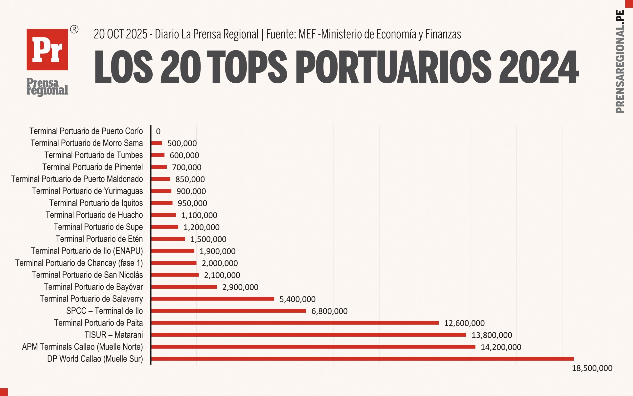 Son diez criterios fundamentales que no solo consideran el volumen de carga, sino también la calidad del servicio, la eficiencia logística y el rol estratégico de cada terminal. Sin embargo, para simplificar el análisis, nos enfocamos en el volumen de carga movilizada, que es el factor determinante del ranking mencionado.