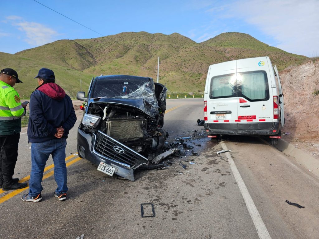 Un fuerte accidente de tránsito se registró la mañana de este domingo 9 de marzo en el sector de Cruzpata, distrito de Torata. Alrededor de las 6:00 a. m., una miniván Renault Master de placa ZAE-956, perteneciente a la empresa Corporación Transandes SAC, que se dirigía de Moquegua a Puno, impactó frontalmente contra un Hyundai H-1 M/bus de placa BZS-661, propiedad de Cerapio Nina Pérez, que circulaba en sentido contrario desde Puno.
