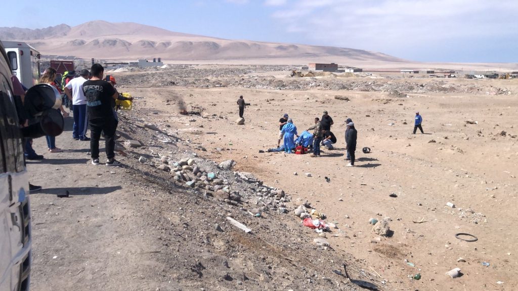 Se trata de la motocicleta de placa de rodaje 8552-IC, marca Saeta, color negro, que se despistó y volcó aparatosamente, saliendo el conductor despedido, sufriendo lesiones graves. Hasta el lugar se constituyó personal del SAMU, quienes brindaron los primeros auxilios, trasladándolo al área de emergencia del Hospital del Ministerio de Salud Ilo, donde el médico de turno diagnosticó Traumatismo Encéfalo Craneano (TEC) severo.