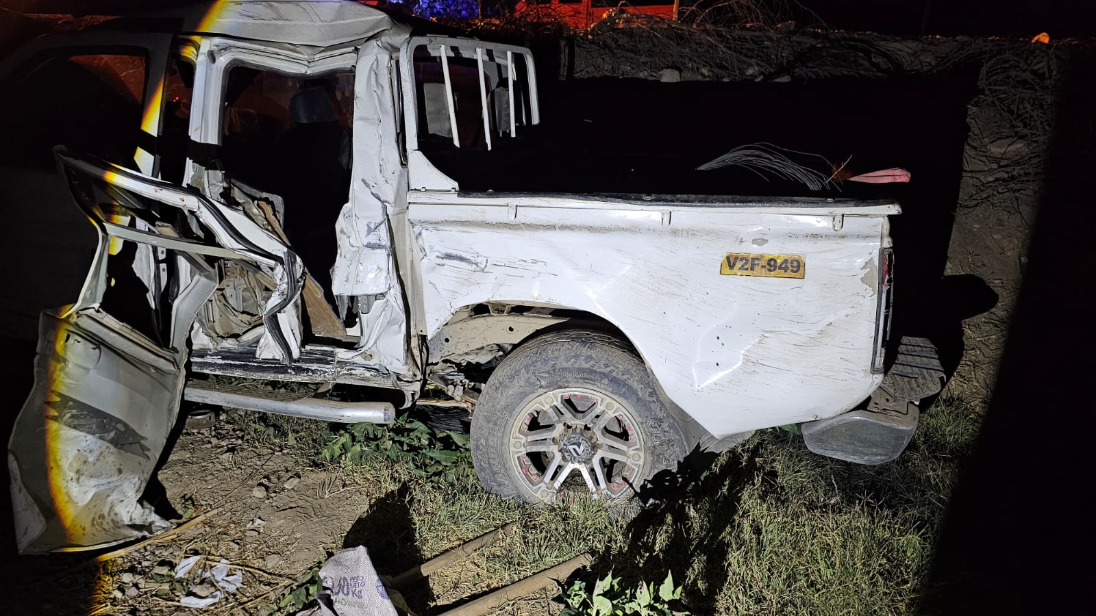 Según el reporte de la Policía de Carreteras, el siniestro fue un embiste lateral izquierdo céntrico entre la camioneta Nissan Frontier, color blanco, de placa V2F-949, conducida por Edwin F.F.C. (37), y la unidad vehicular de color azul, placa Z1B-957, manejado por Donato L.C.V. (60).