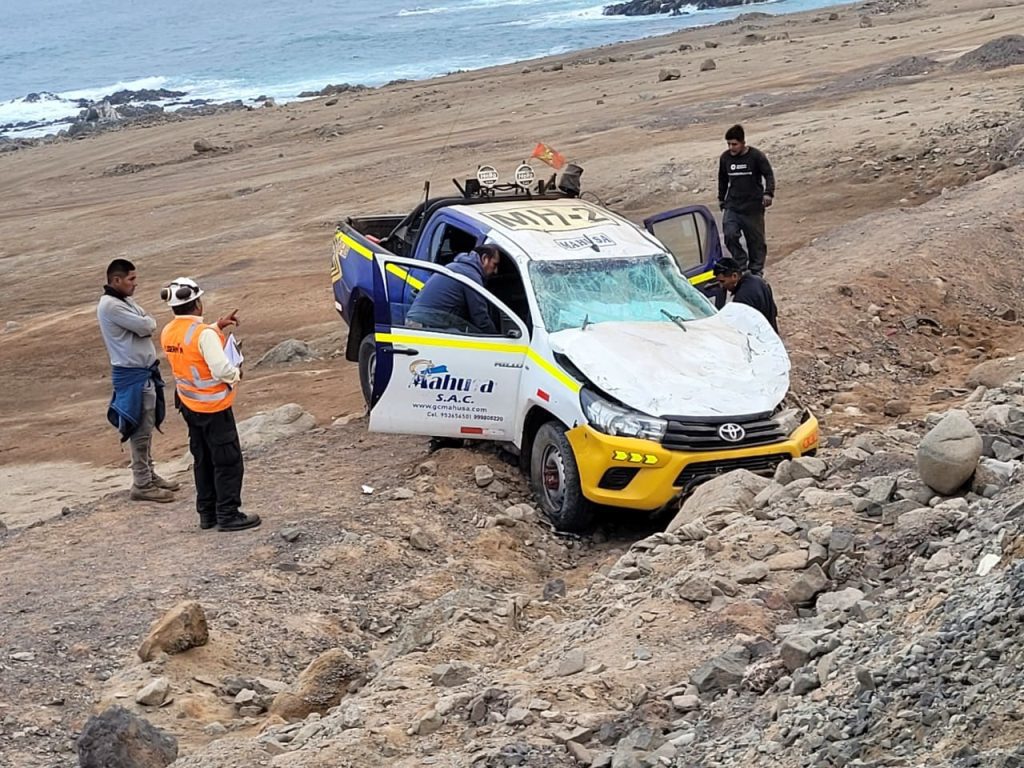 El accidente ocurrió el miércoles aproximadamente a las 15:05 horas, hasta donde llegó personal de la Policía de Carreteras, encontrando la camioneta con placa V0O-809, marca Toyota, color blanco, amarillo y azul, de la empresa Mahusa SAC.