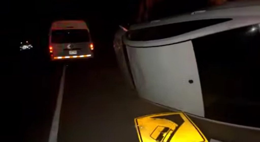 A consecuencia del impacto, el automóvil terminó volcado sobre la vía, generando preocupación entre los conductores que transitaban por la zona.