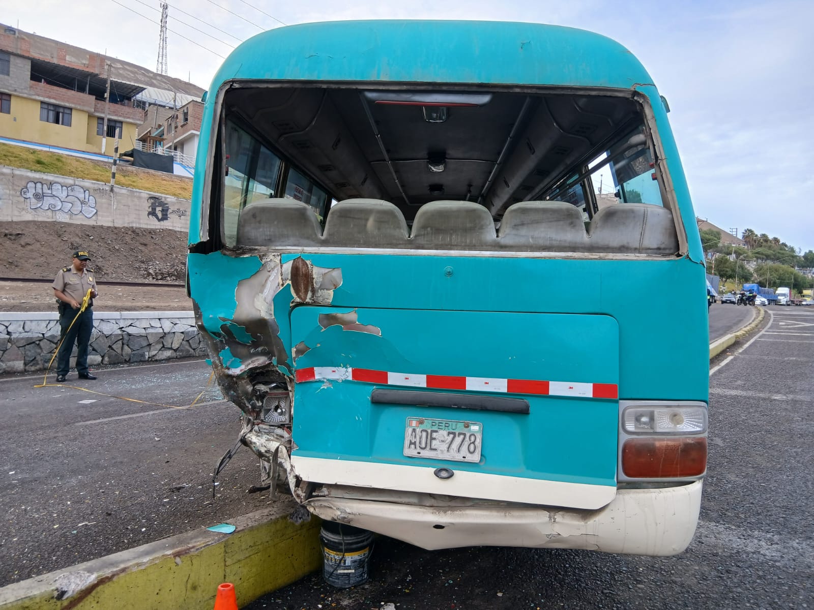 El hecho se produjo por un choque por alcance, cuando una cúster de servicio público de la Ruta 12, de placa A0E-778, marca RMC, color verde y perteneciente a la empresa Libertad, conducida por Teodoro Guillen Rendon (58) fue impactada en la parte posterior por una camioneta 4×4, de matrícula AMX-927, marca Toyota, modelo Hilux, color negro, de propiedad de la empresa Mining Company Services SAC, manejada por Johnny Gonzales Dueñas (59).